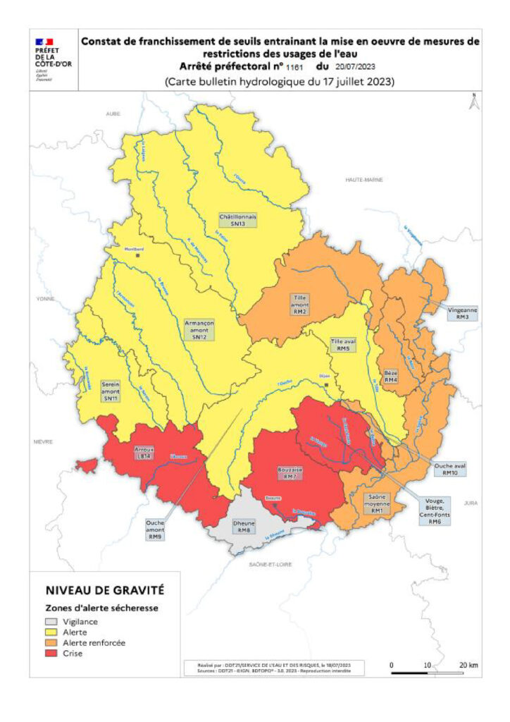 27/07/2023 | Actualités, Arrêté préfectoral, Côte d'Or, Limitation des usages de l'eau